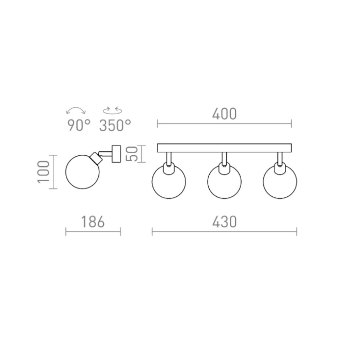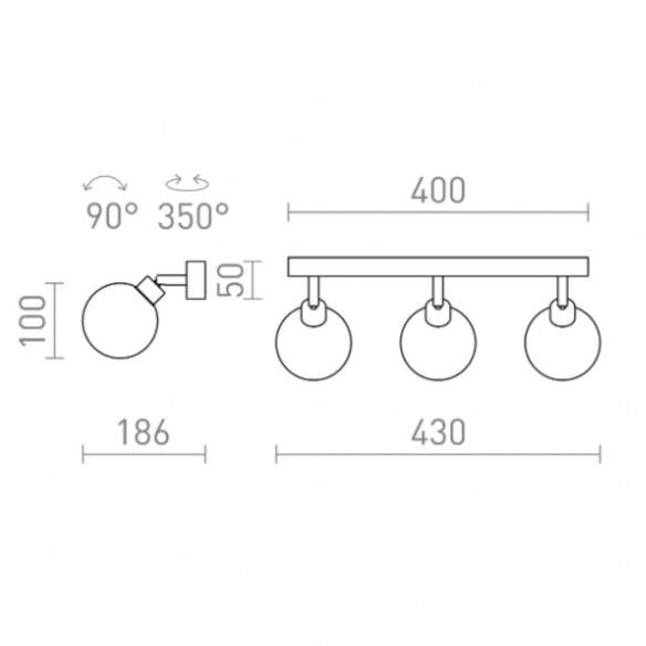 L’orientabilità del faretto, con inclinazione fino a 90° e rotazione di 350°, permette di dirigere la luce con precisione, adattandola alle diverse esigenze di utilizzo.