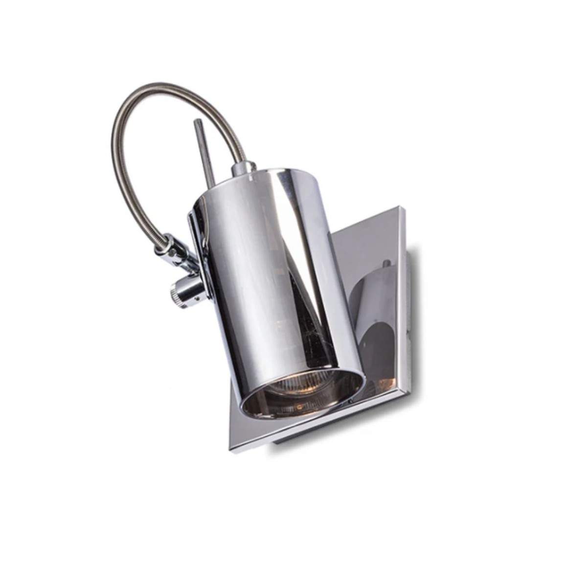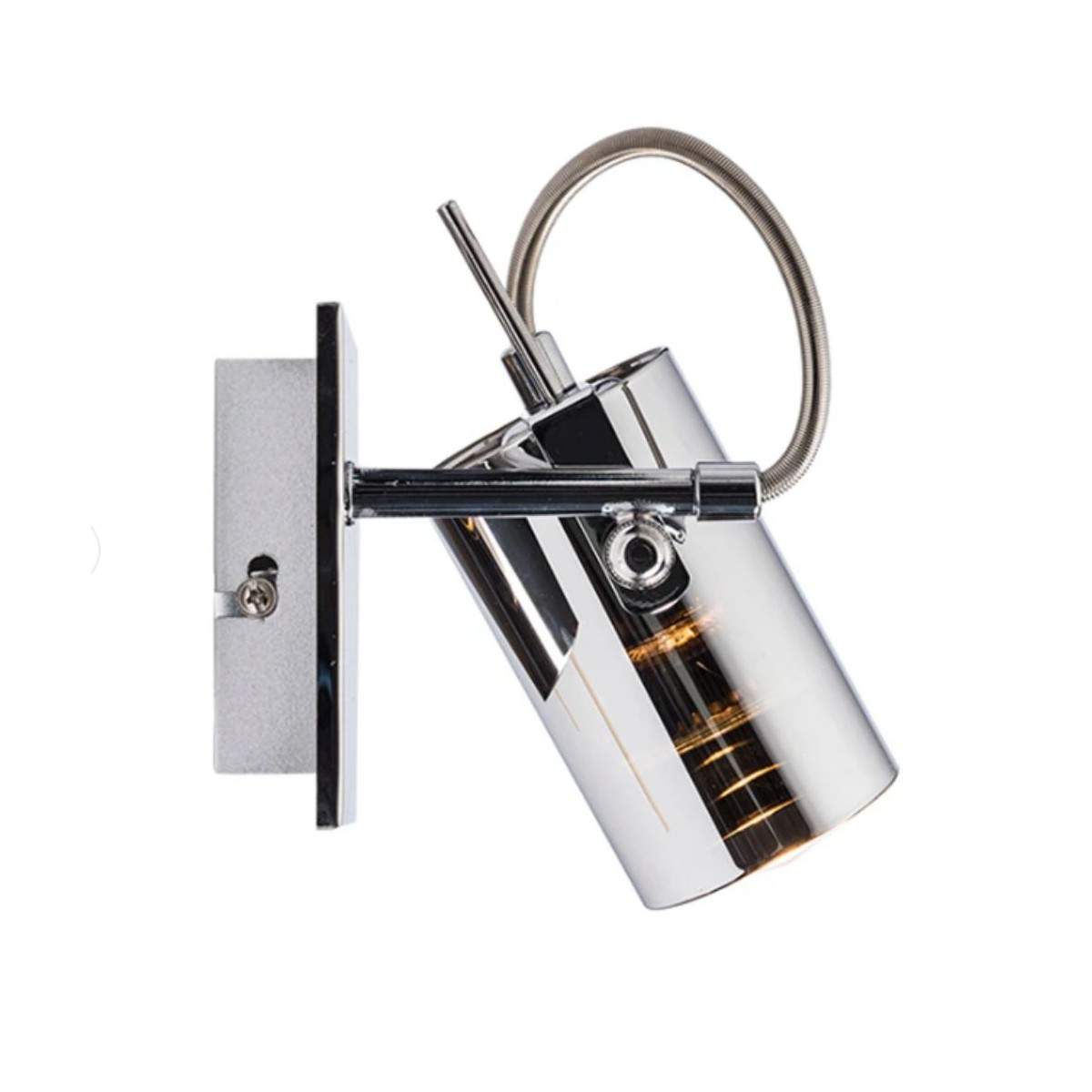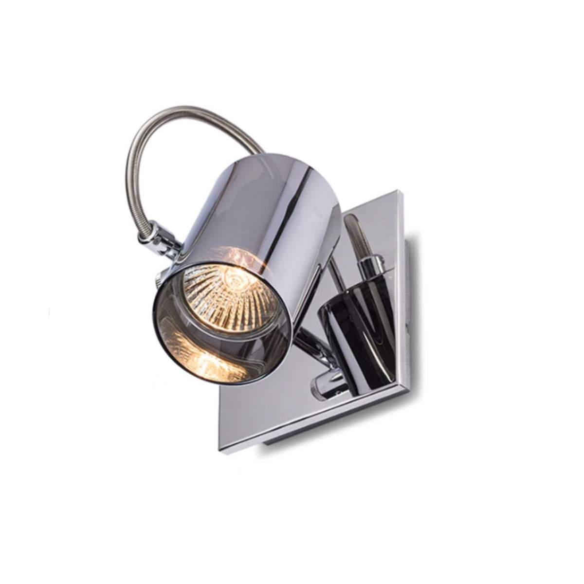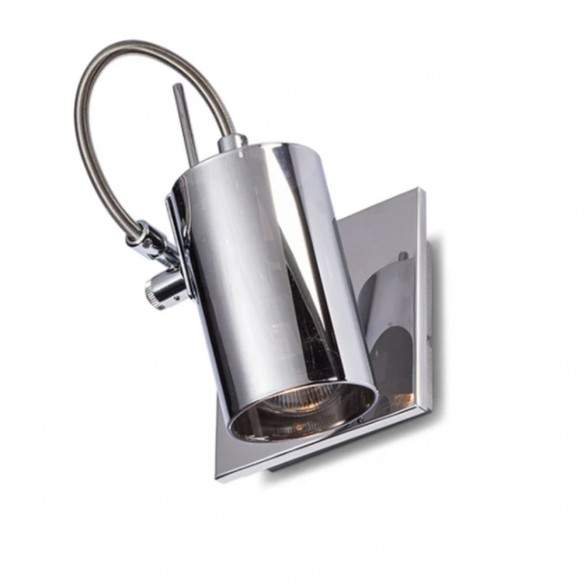 Faretto BUGSY con paralume in vetro a specchio su base cromata.