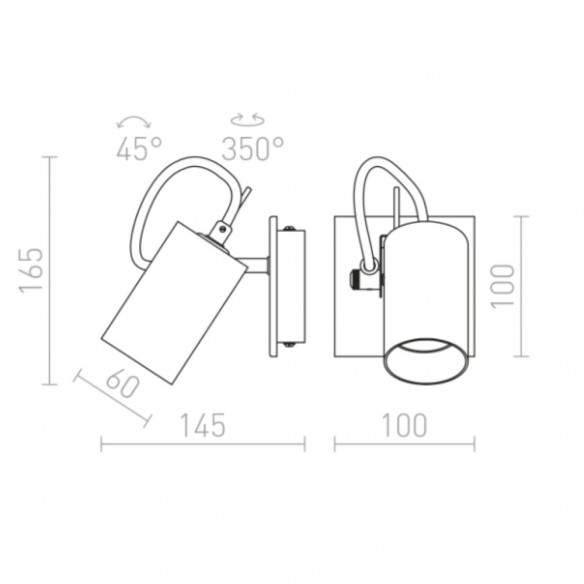 Compatto ma potente, con un diametro di 6 cm, altezza di 15 cm e profondità di 9 cm, BUGSY si integra perfettamente in qualsiasi ambiente, offrendo un fascio luminoso regolabile grazie all’angolo di inclinazione di 45° e alla rotazione di 350°. Compatibile con lampadine GU10 fino a 50 W, permette di personalizzare l’intensità e il tipo di illuminazione secondo le esigenze.