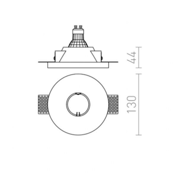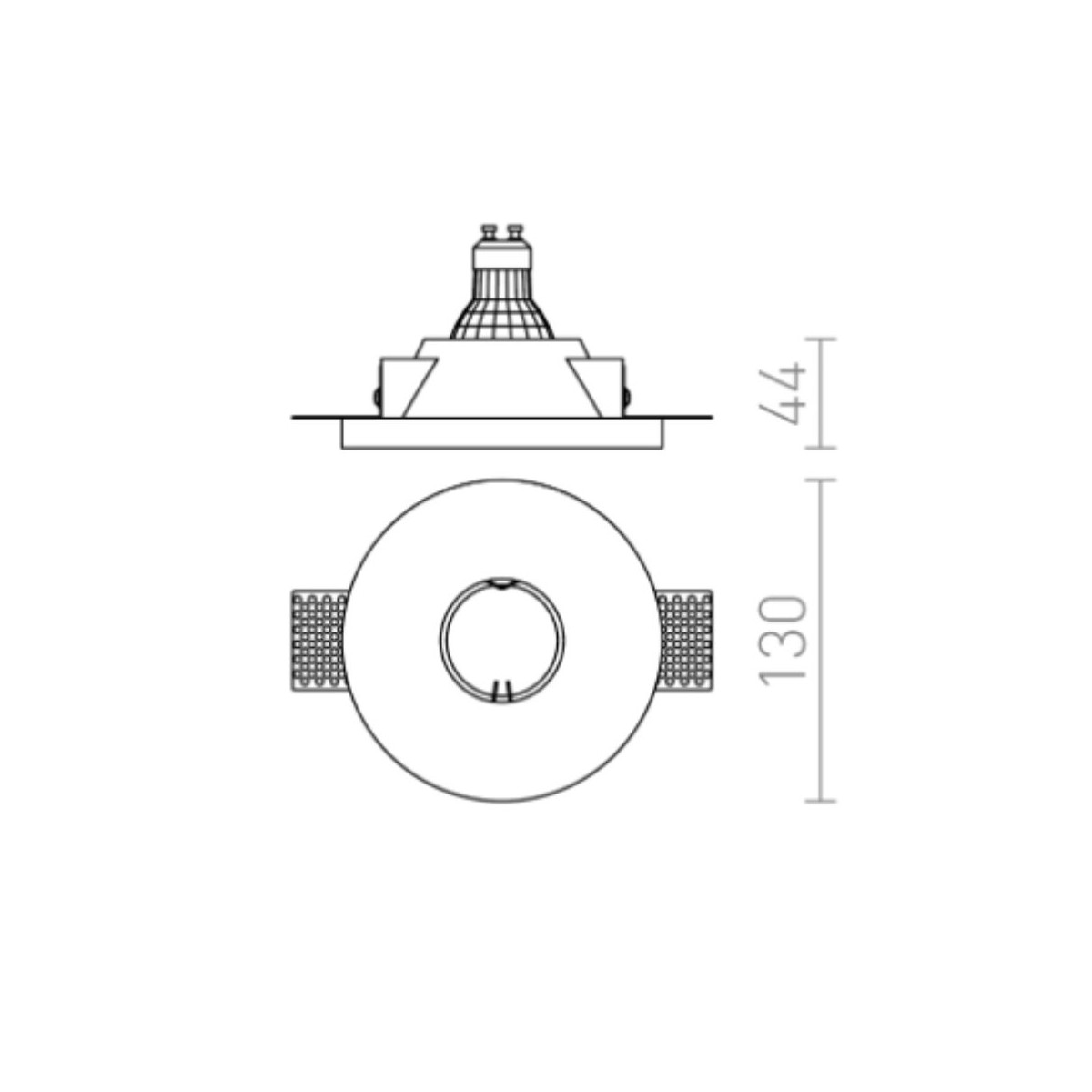 Il faretto da incasso DAG in gesso, in versione senza cornice, è pensato per chi desidera un’illuminazione completamente integrata nel soffitto, pulita e quasi invisibile.