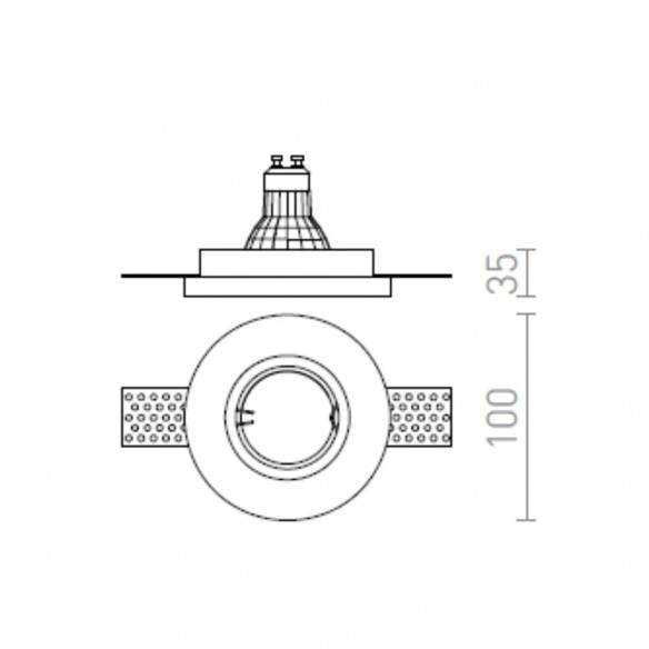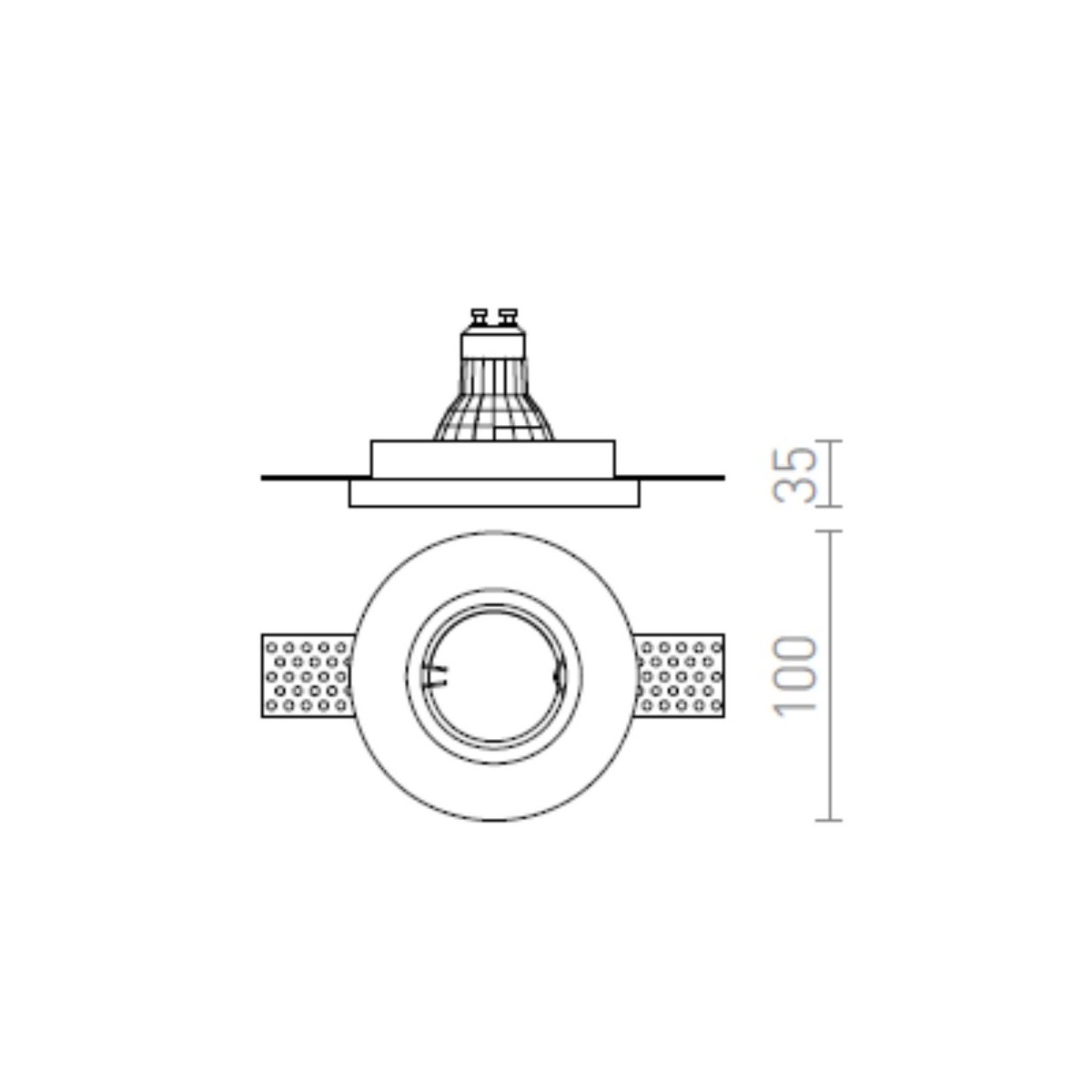 Il foro di montaggio richiesto è di 10 cm, con una profondità di incasso di 15 cm, e il faretto è compatibile con lampadine dotate di presa GU10, pensato esclusivamente per installazioni nel cartongesso.