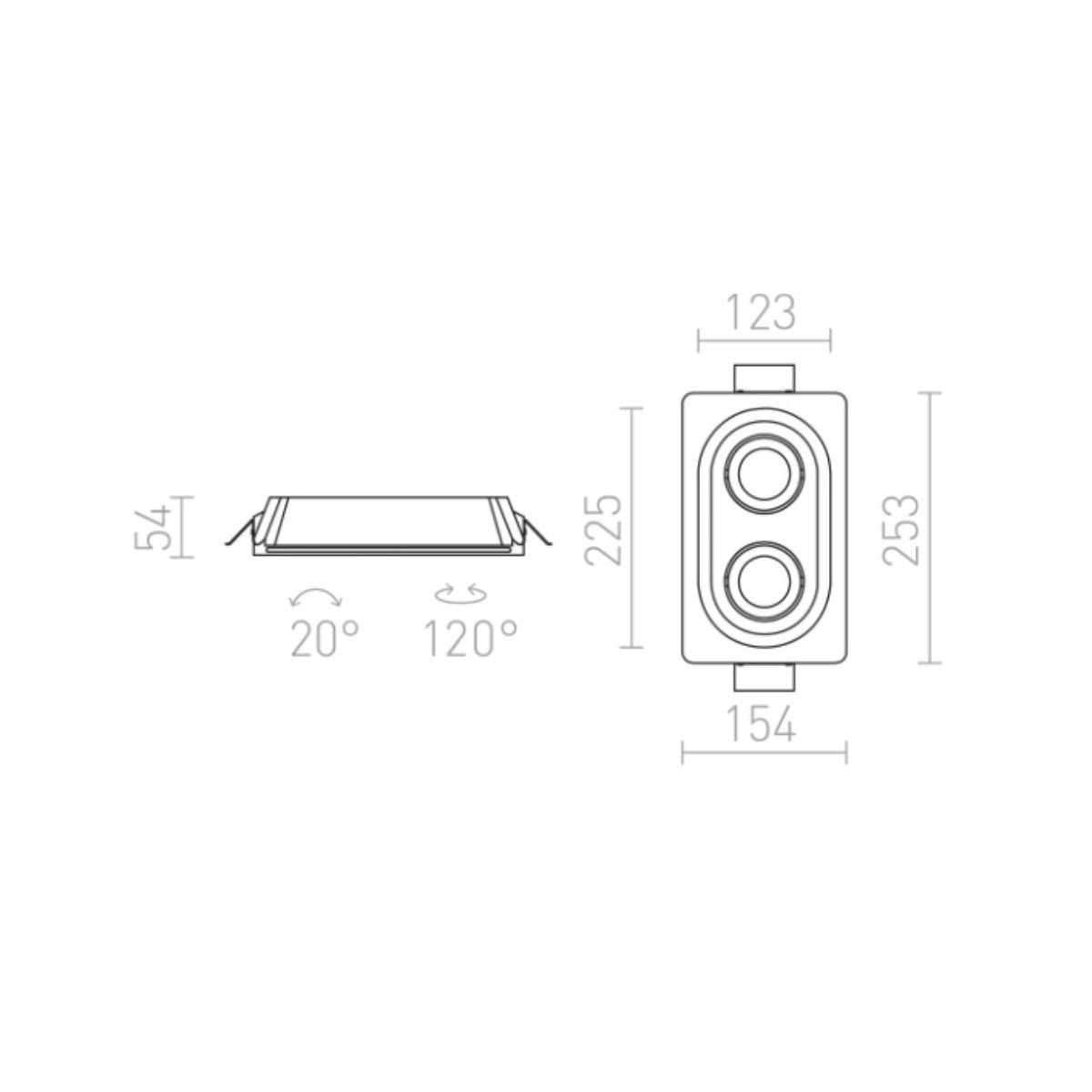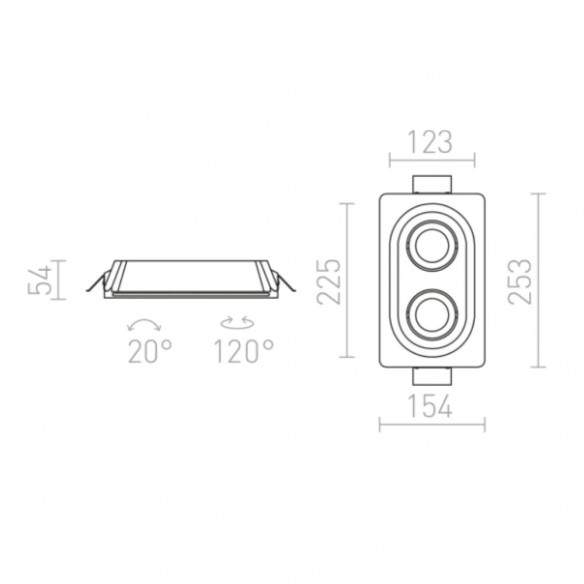 Progettato esclusivamente per installazioni su controsoffitti in cartongesso, questo modello offre un’elevata versatilità luminosa grazie all’inclinazione fino a 20° e alla rotazione di 120°, rendendolo ideale per mettere in risalto pareti, elementi decorativi o zone specifiche dell’ambiente.
