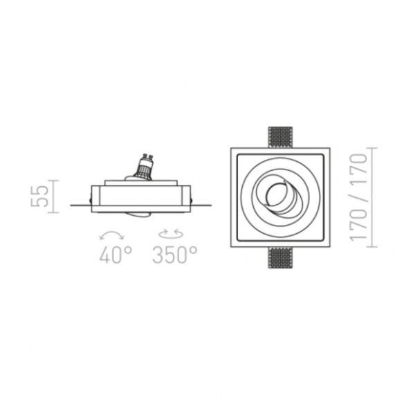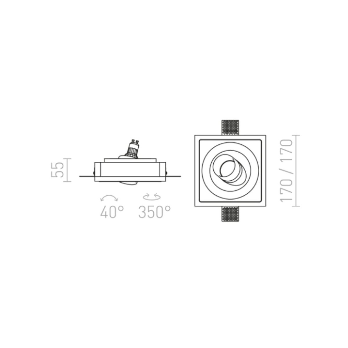 Pensato esclusivamente per installazioni su cartongesso, questo modello si distingue per l’ampia libertà di orientamento della luce: il riflettore può essere inclinato fino a 40° e ruotato fino a 350°, rendendolo ideale per valorizzare pareti, quadri, nicchie o dettagli architettonici con estrema precisione.