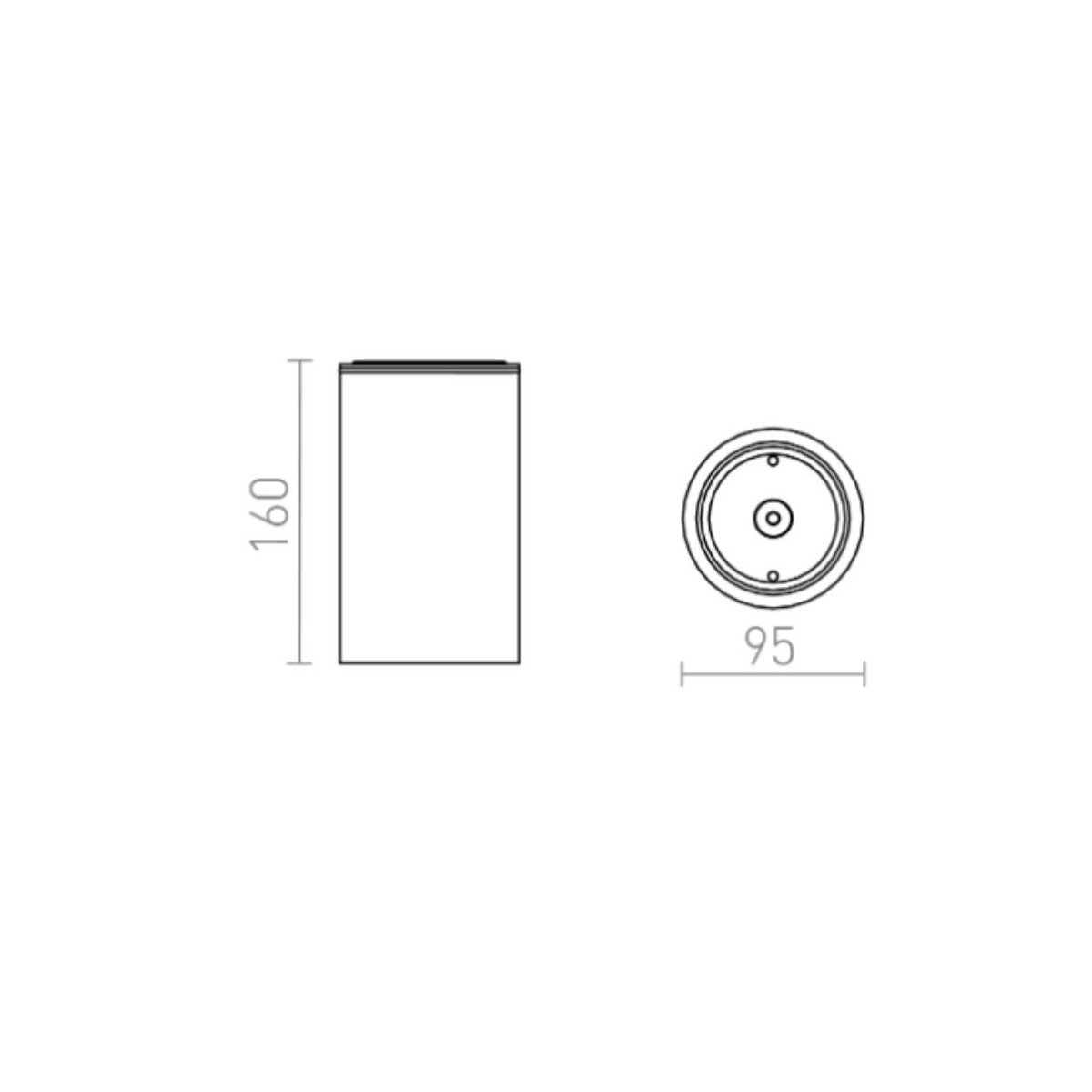 Faretto DUNE a soffitto cilindrico adatto all‘uso in ambienti umidi per sorgenti LED con filettatura E27.