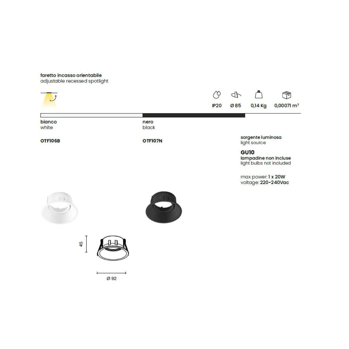 Il faretto ad incasso orientabile FAT unisce design contemporaneo e praticità. La struttura in zinco garantisce solidità e durata, mentre la lampada rientrante permette di dirigere la luce con precisione, ideale per illuminare dettagli, angoli o punti focali di qualsiasi ambiente.