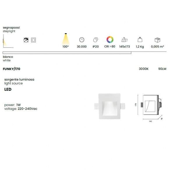 FUNKY è un faretto segnapasso da incasso pensato per creare illuminazione indiretta elegante e discreta. La struttura in gesso verniciabile permette di integrarlo perfettamente in qualsiasi ambiente, adattandosi allo stile della tua casa o dello spazio contract.