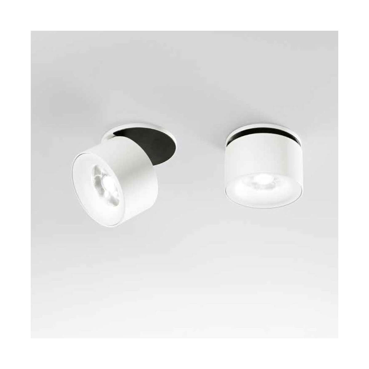 Faretto ad incasso orientabile GUABA struttura in alluminio e diffusore rientrante in policarbonato.