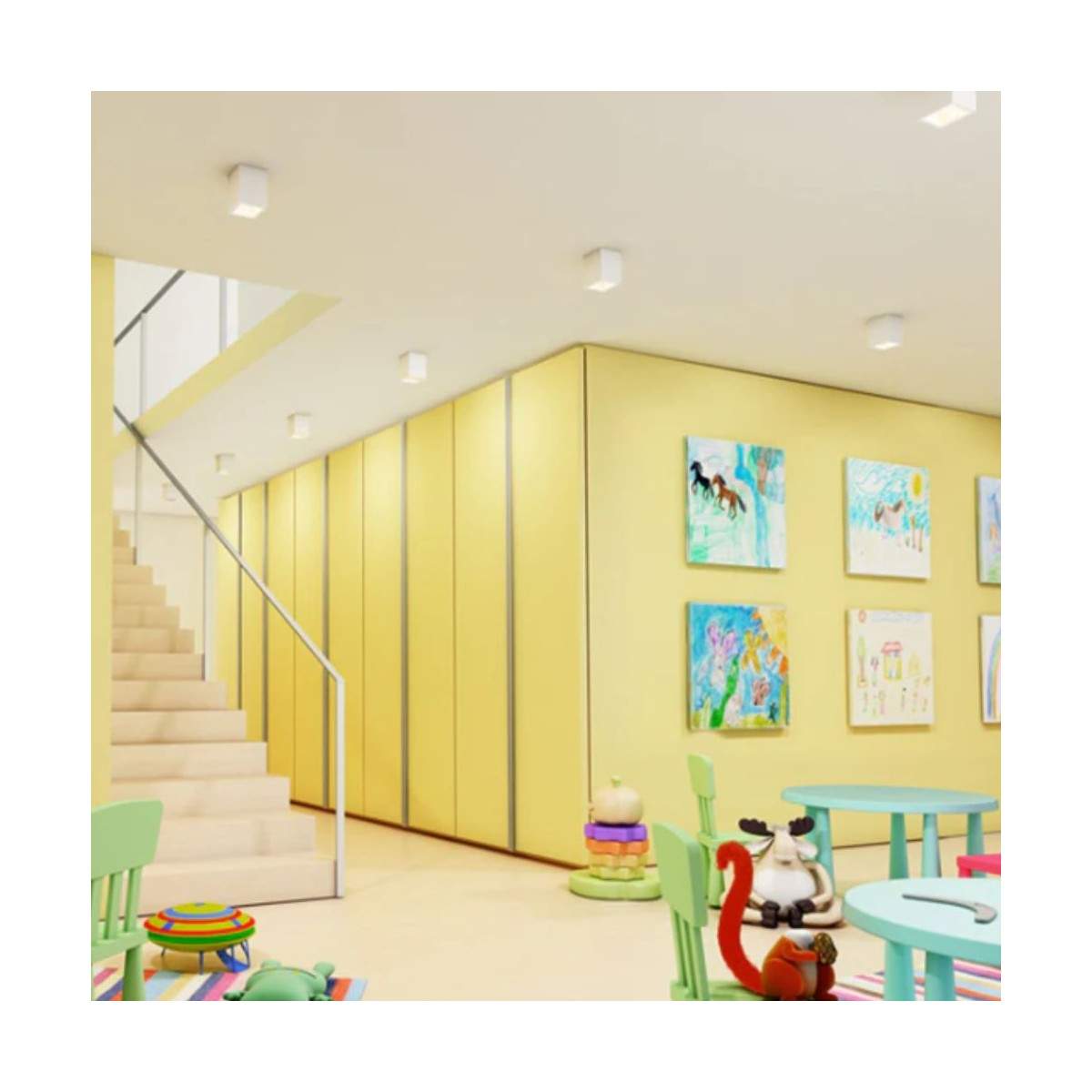Il faretto JACK si distingue per il suo design quadrato essenziale e per la possibilità di personalizzazione totale. Realizzato in gesso verniciabile, può essere dipinto con vernici da interni per integrarsi perfettamente con il soffitto o per creare contrasti raffinati, adattandosi a qualsiasi stile d’arredo.