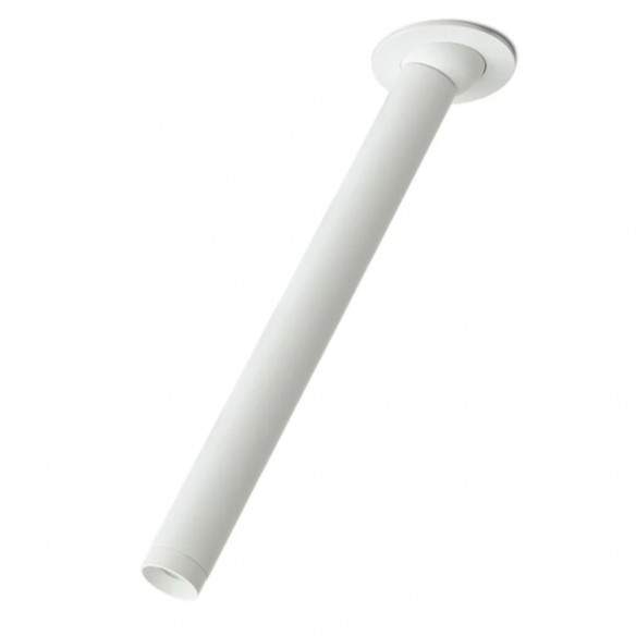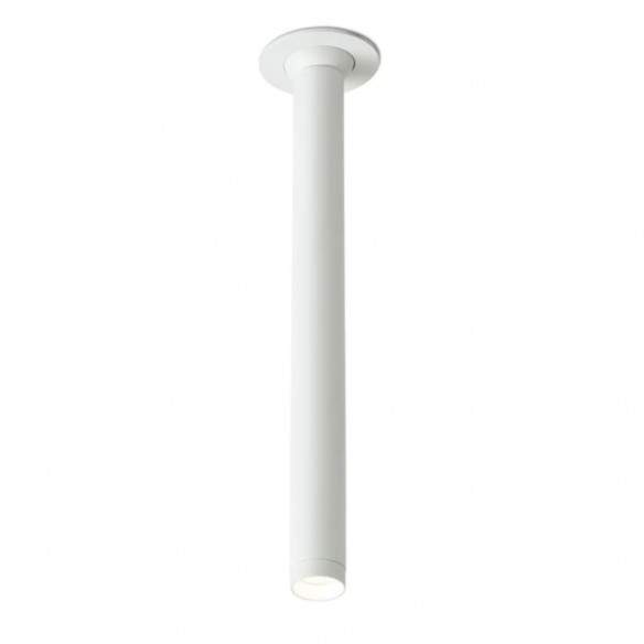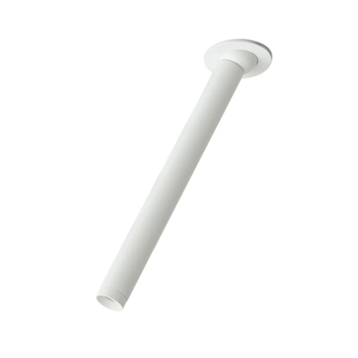 Le proporzioni slanciate — diametro 6,9 cm e lunghezza 31,5 cm, con foro di montaggio da 6,2 cm e profondità di incasso di soli 7 cm — permettono un’installazione pulita anche in controsoffitti poco profondi. Grazie all’inclinazione di 35°, alla rotazione di 350° e all’angolo di luce di 38°, la luce può essere direzionata con precisione, creando effetti luminosi su misura e mettendo in risalto elementi architettonici o d’arredo.