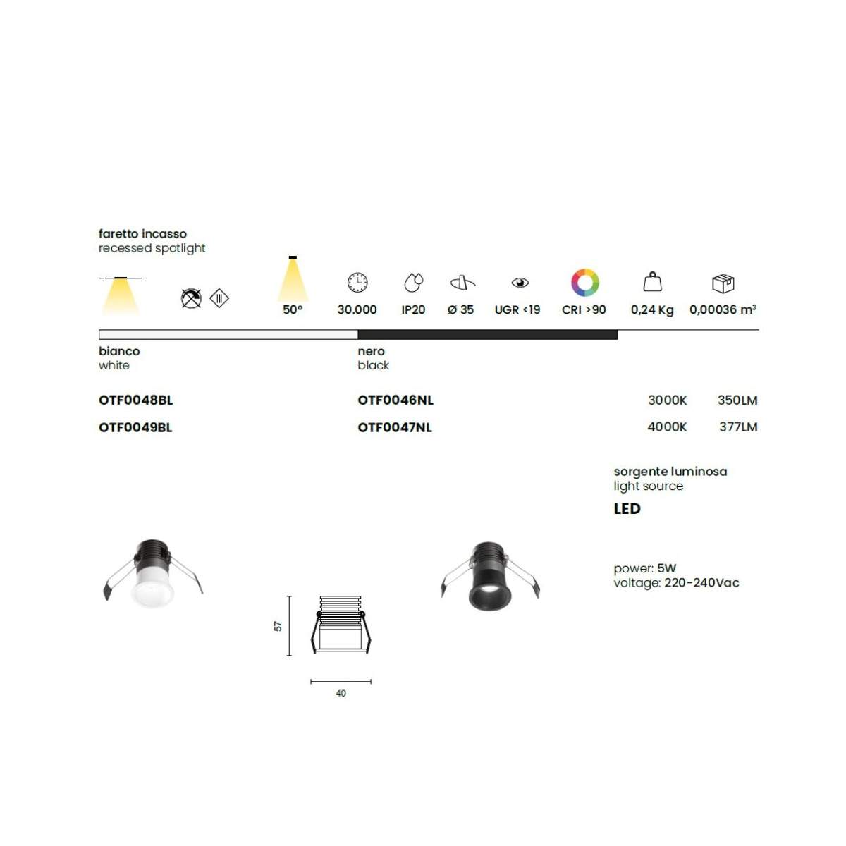 La sorgente LED integrata e il driver incluso assicurano efficienza energetica e lunga durata, con prestazioni costanti nel tempo.