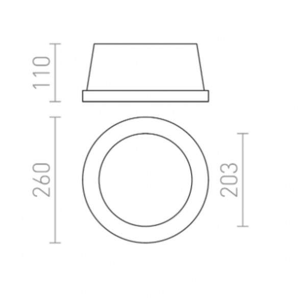 Compatibile con lampadine LED E27 fino a 11W, assicura una luminosità efficace e un risparmio energetico. Le dimensioni generose — diametro 20,3 cm, altezza 20 cm, con foro di montaggio da 26 cm e profondità di incasso di 18 cm — lo rendono adatto anche a spazi più ampi, garantendo un punto luce importante e ben distribuito.