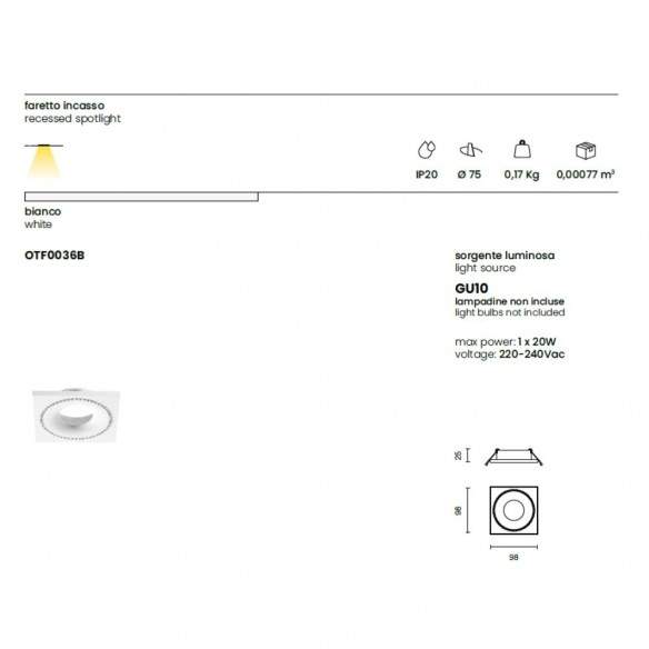 Il faretto ad incasso MINISTRY è la scelta ideale per chi cerca un’illuminazione discreta ma efficace, capace di esaltare gli ambienti senza appesantirne lo stile. La sua struttura in alluminio con finitura in bianco opaco conferisce un aspetto moderno e raffinato, perfetto per integrarsi in spazi residenziali o professionali.