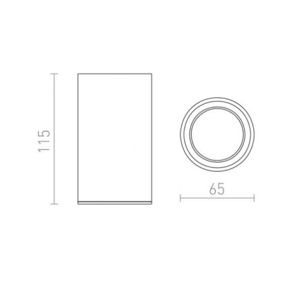 Faretto MOMA cilindrico per sorgente luminosa alogena non orientabile con altezza massima di 56 mm.