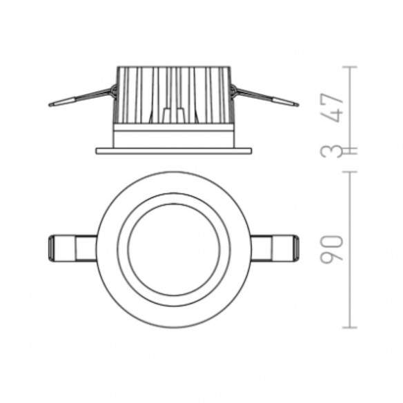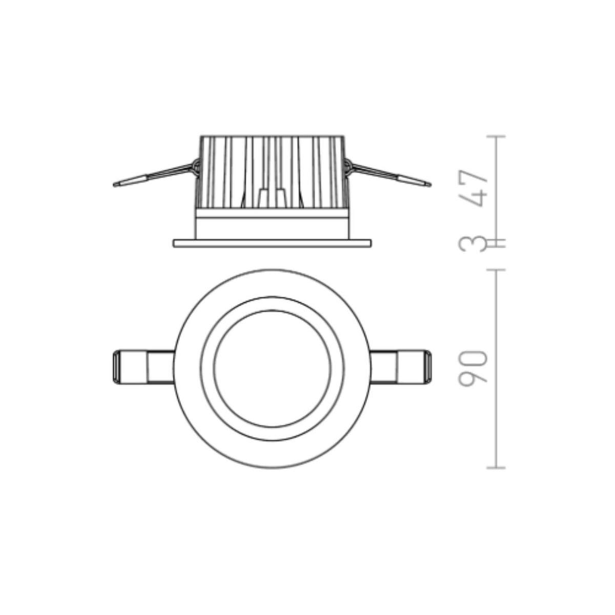Compatto ed elegante, con diametro 9 cm, altezza 9 cm, foro di montaggio 7 cm e profondità di incasso 7 cm, si integra perfettamente in qualsiasi soffitto, offrendo una presenza minima ma un effetto luminoso massimo.