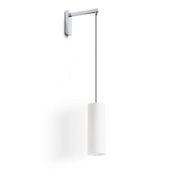 Lampada a parete AUDSON con base cromata e cavo verticale, rifinito con un paralume cilindrico di tessuto