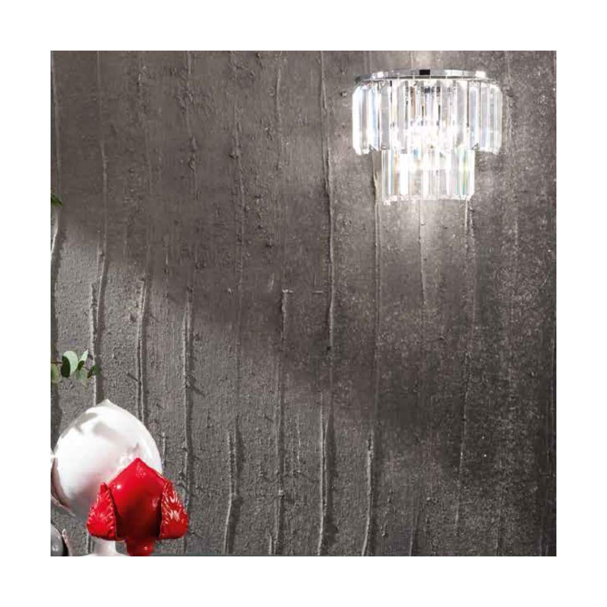 L’applique Castle porta sulle pareti tutto il fascino di un’eleganza classica rivisitata in chiave moderna. La struttura metallica, solida e raffinata, è impreziosita da pendenti in cristallo che catturano la luce e la riflettono in mille sfaccettature, regalando all’ambiente un’atmosfera calda e sofisticata.