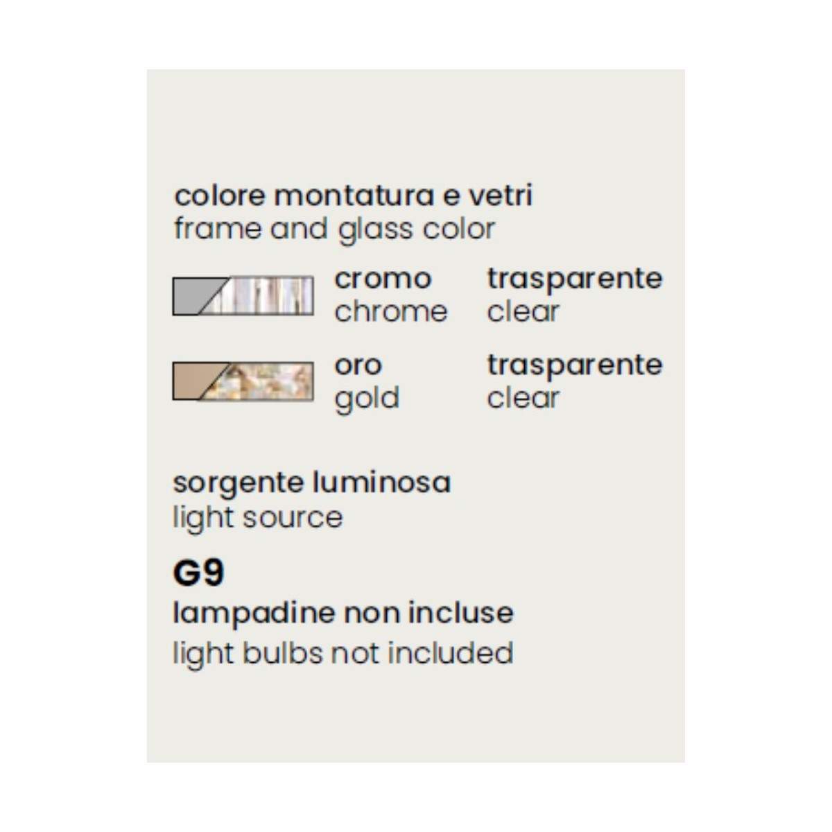 Disponibile nelle finiture Cromo Trasparente e Oro Trasparente, Castle si integra perfettamente in ambienti sia tradizionali che contemporanei, diventando un punto luce scenografico e di grande impatto visivo.