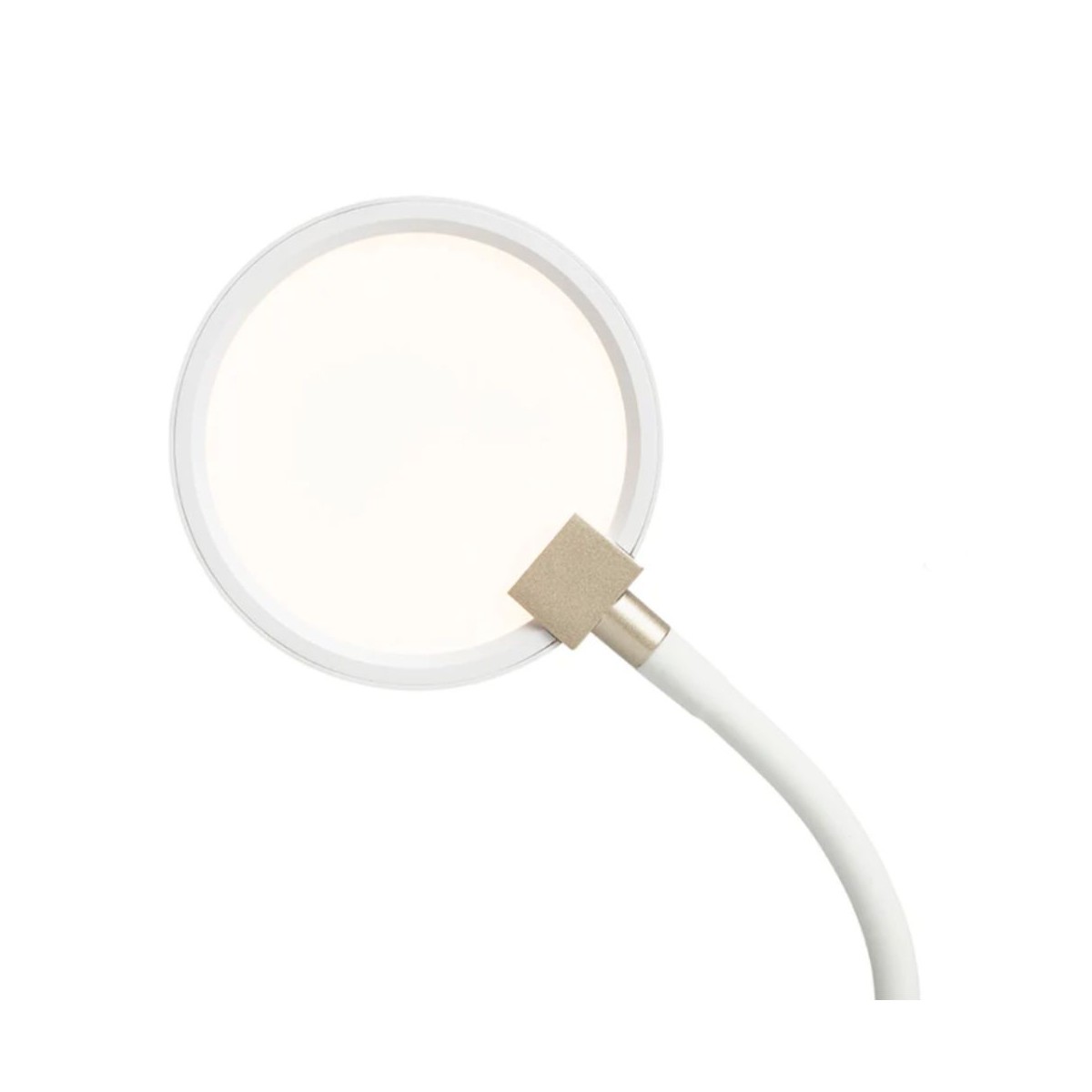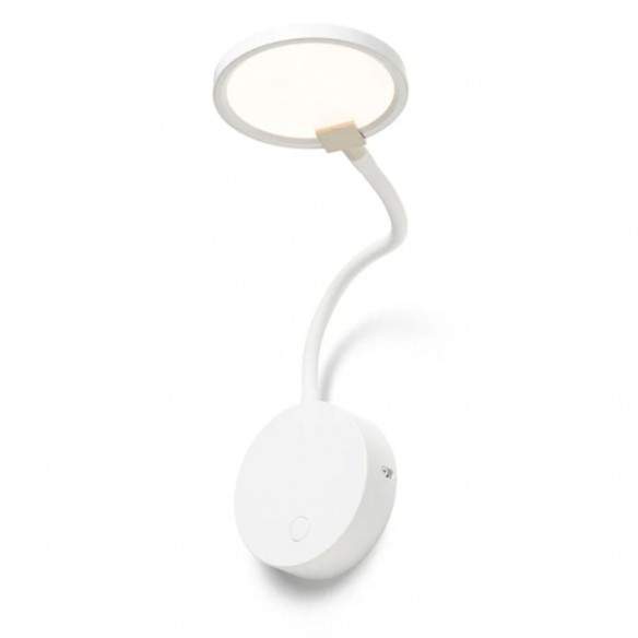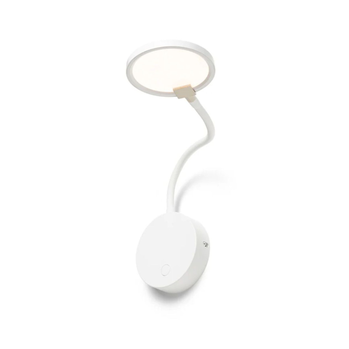Lampada a parete CELESTE a LED a parete su collo flessibile con riflettore circolare dotato di diffusore color latte per un‘illuminazione diffusa. L‘interruttore si trova sulla base.