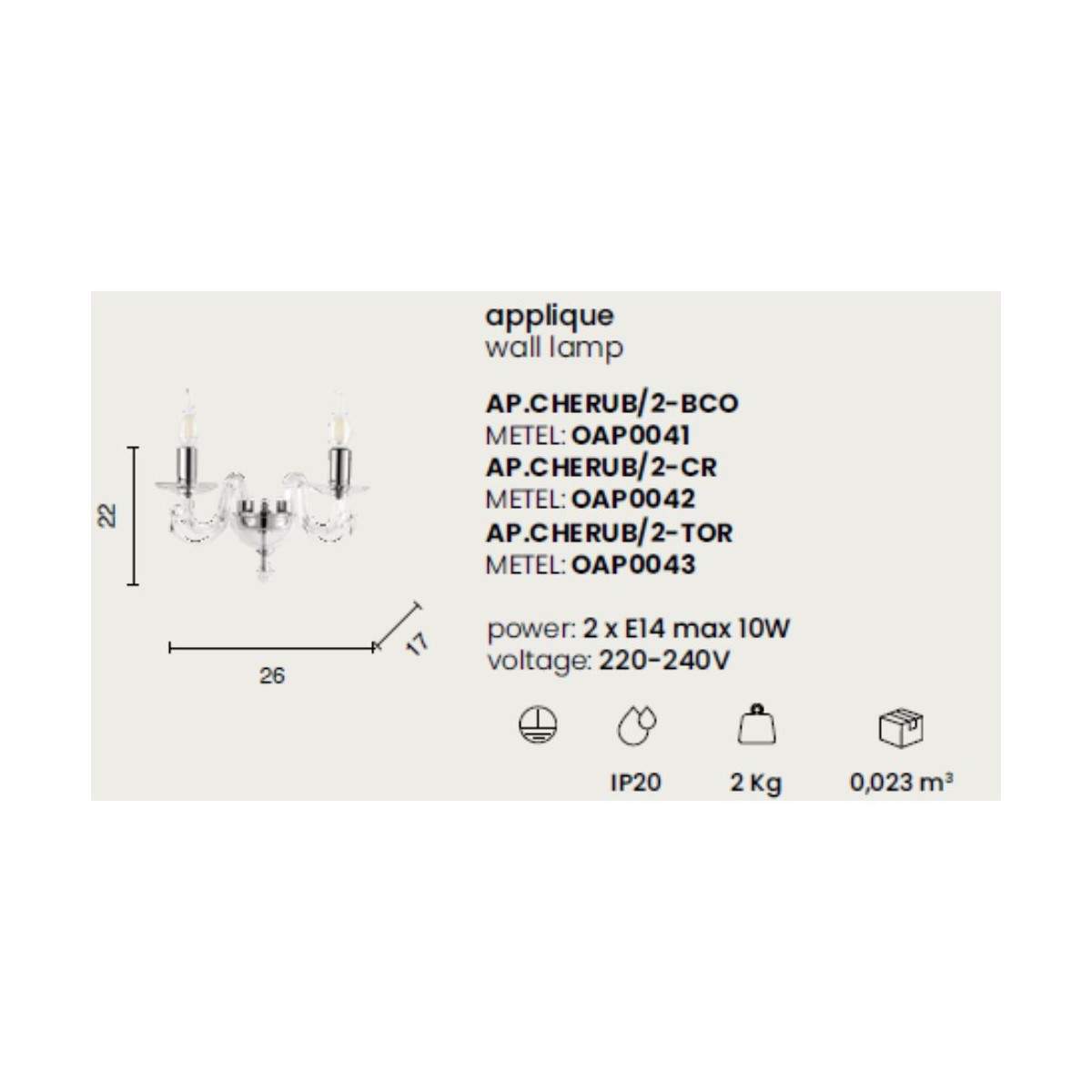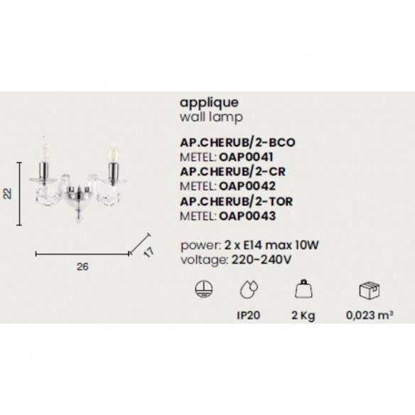 La lampada a parete CHERUBINI nasce dall'incontro tra vetro lavorato a mano e cristallo ottico, per regalare alla luce un effetto brillante e raffinato. Un complemento pensato per chi ama i dettagli classici rivisitati in chiave elegante e contemporanea.