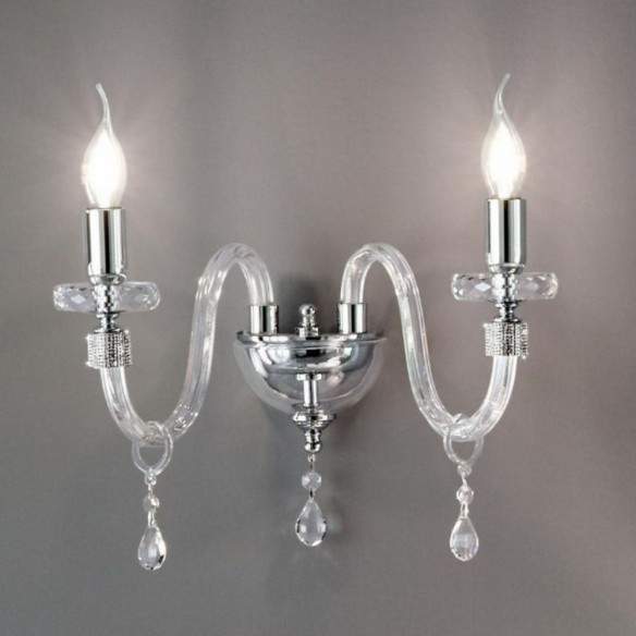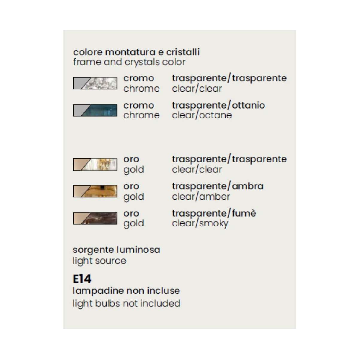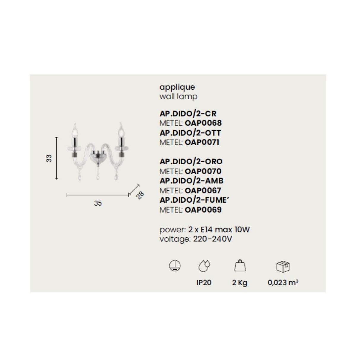Lampada a parete DIDO in vetro lavorato a mano, con dettagli in cristallo ottico. Finiture in metallo.