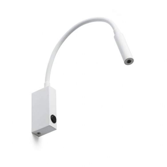 Lampada a parete EKE con LED integrato su collo di cigno e interruttore posizionato sulla base.