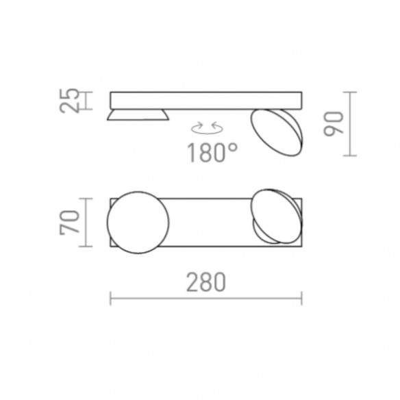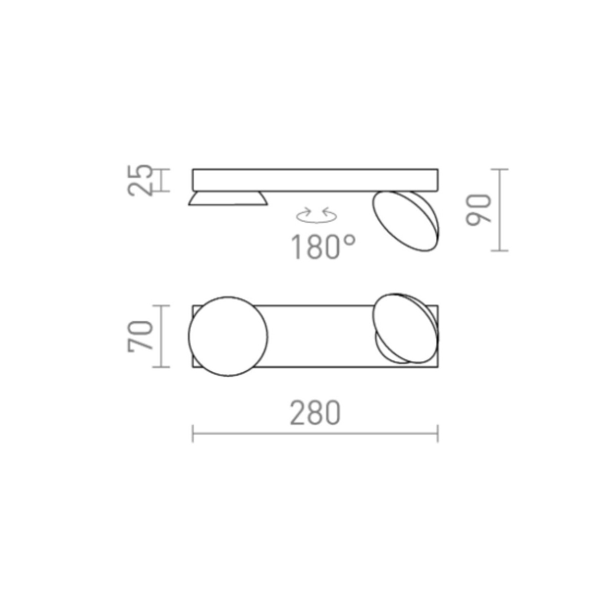 Dotata di due riflettori a ciotola rotante con diffusore bianco latte, permette di dirigere la luce con precisione, ideale per creare punti luce focali o per illuminare in maniera uniforme pareti e angoli della casa.