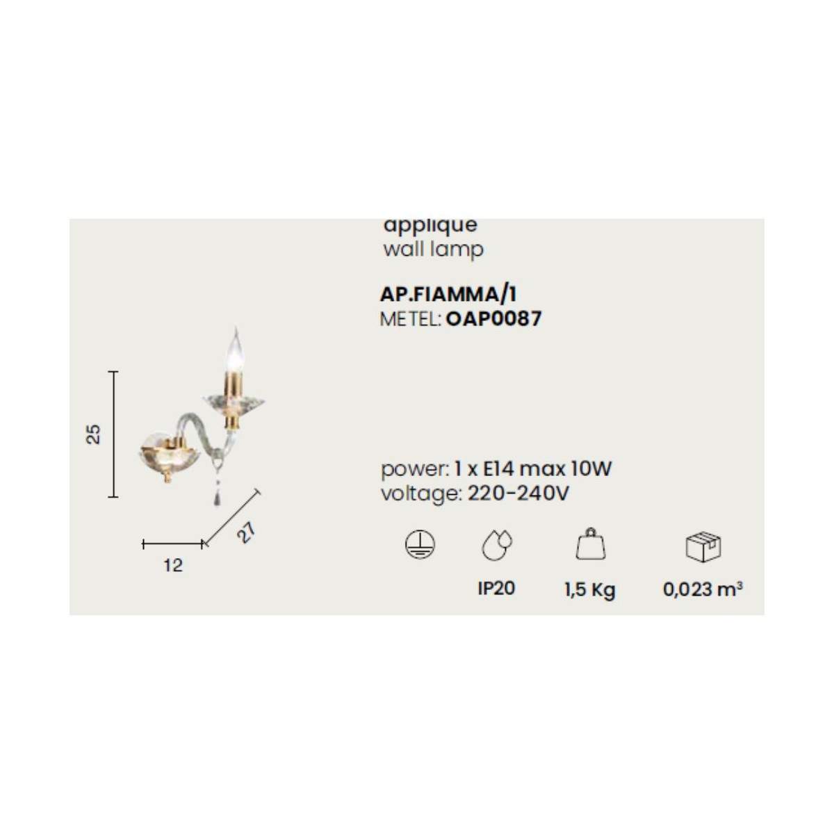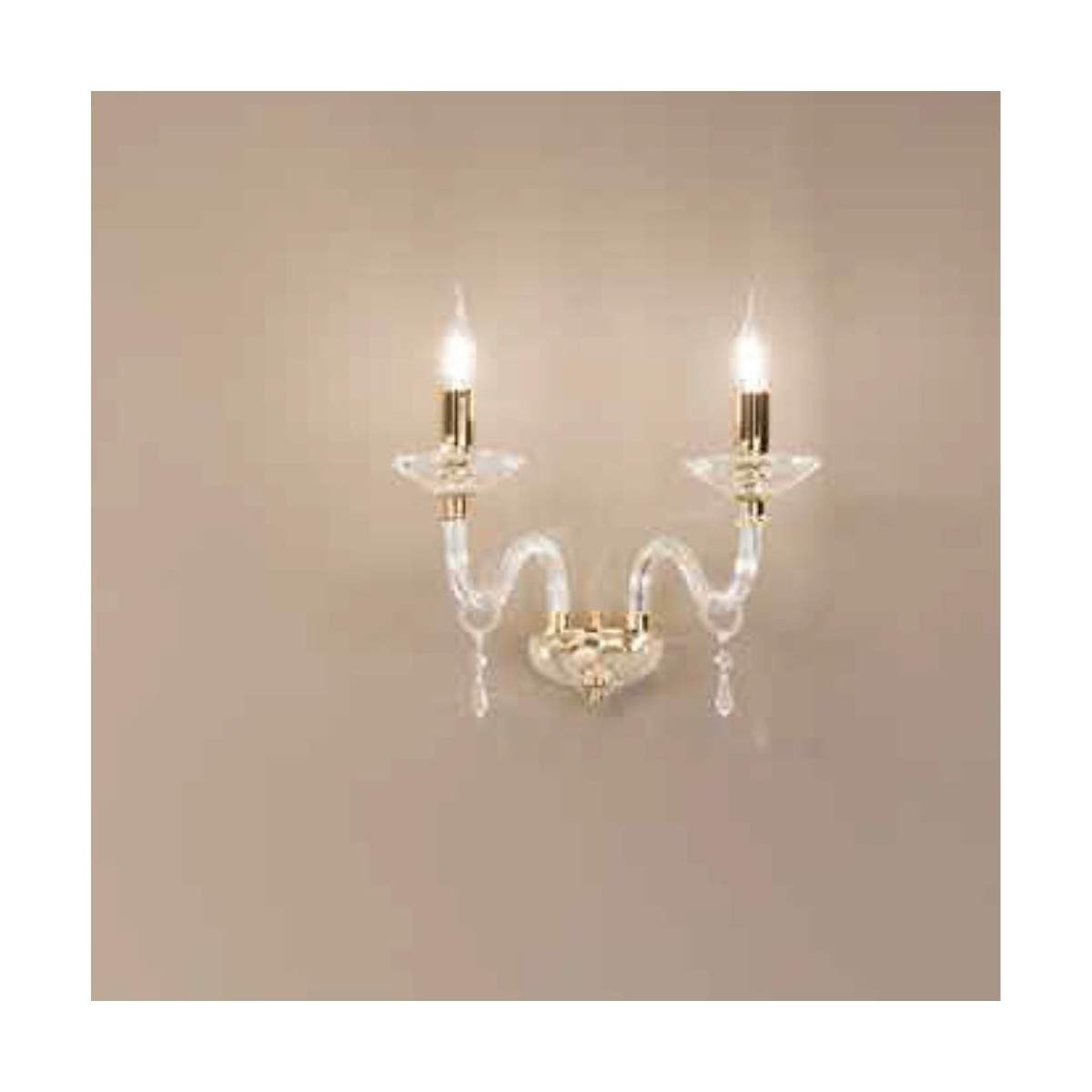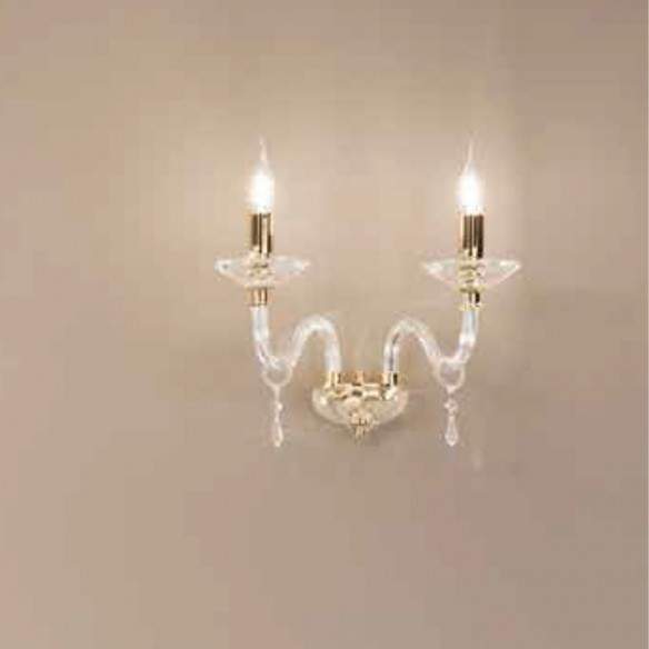 Lampada a parete FIAMMA in cristallo e vetro trasparente, finitura oro.