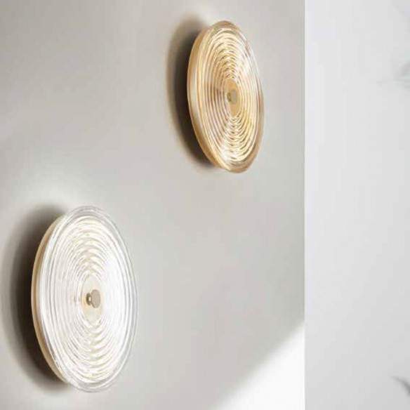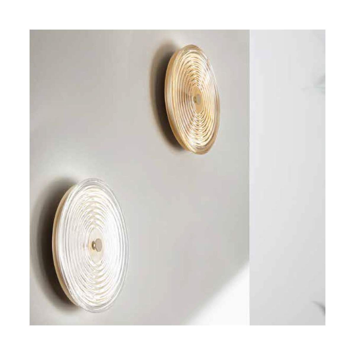 Design raffinato e dettagli ricercati si incontrano nella lampada a parete JOKEY, un complemento d’arredo che trasforma la luce in un vero elemento decorativo. La montatura in metallo verniciato oro regala un tocco prezioso e contemporaneo, mentre il vetro decorato a righe concentriche gioca con i riflessi creando affascinanti effetti ottici, anche da spenta.