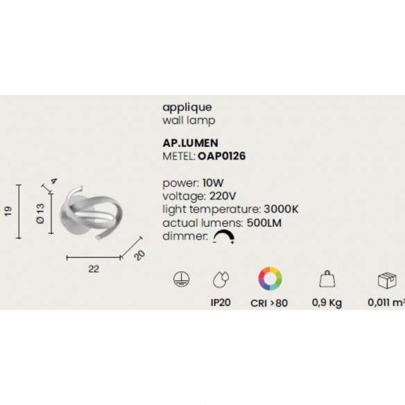 Minimalista ma d’impatto, la lampada a parete LUMEN si distingue per la sua struttura in metallo verniciato color silver, abbinata a un elegante diffusore in materiale polimerico che ammorbidisce la luce e crea un’atmosfera calda e avvolgente.