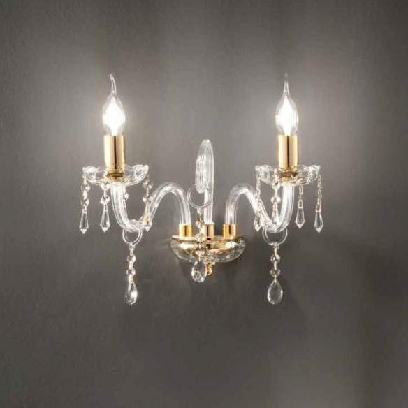 Lampada a parete MARIA TERESA L6 in vetro lavorato a mano con finiture oro e cristalli trasparenti.