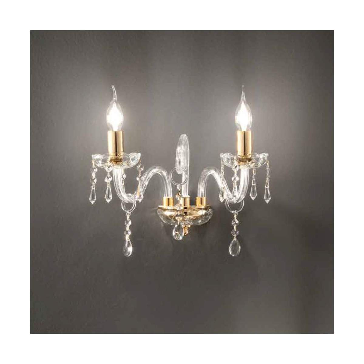 Realizzata in vetro lavorato a mano con finiture dorate e cristalli trasparenti, MARIA TERESA L6 è la scelta perfetta per aggiungere un tocco scenografico e raffinato a pareti di ingressi, corridoi, salotti o camere classiche.