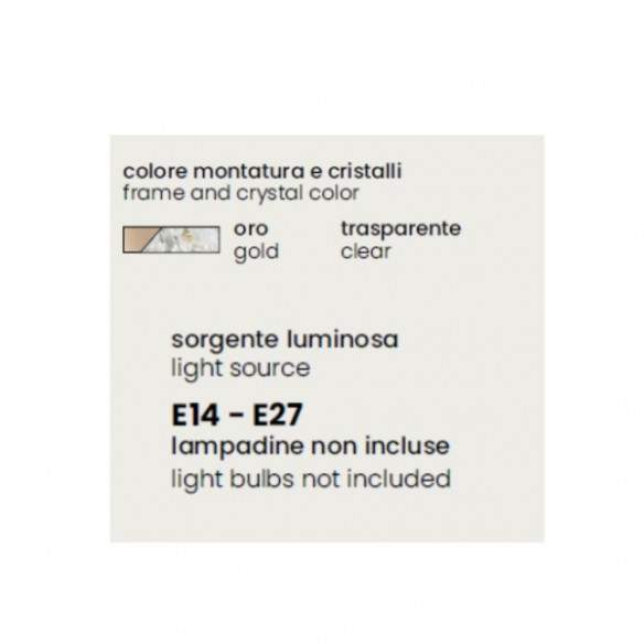 Disponibile nella raffinata colorazione oro trasparente, si distingue per la sua luce discreta ma scenografica.
