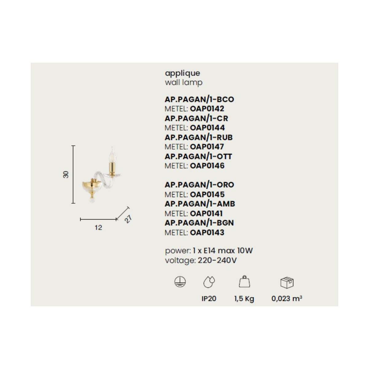 La lampada a parete Paganini celebra la maestria del vetro lavorato a mano, trasformando la luce in una presenza decorativa raffinata e mai scontata. Un elemento d’arredo che coniuga funzione e bellezza, perfetto per ambienti eleganti, sia classici che contemporanei.