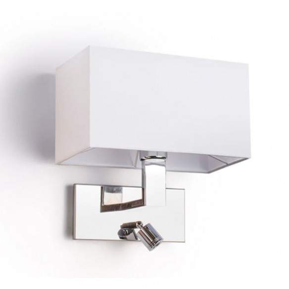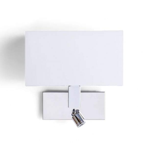 Lampada a parete PLAZA con paralume in tessuto strutturato e riflettore da lettura a LED 3W, controllabili entrambi separatamente da interruttori posti sulla base.
