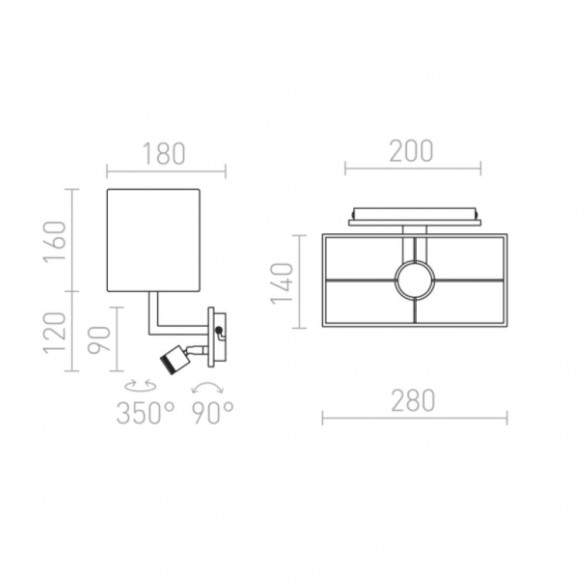 Con 15W di potenza e luce calda a 3000K, PLAZA offre un’illuminazione accogliente per soggiorni, camere da letto o angoli lettura. Le dimensioni compatte – 28 cm di altezza e 18 cm di lunghezza – unite alla possibilità di inclinazione di 90° e rotazione di 350°, rendono questa lampada da parete versatile e funzionale, senza rinunciare a un design elegante.