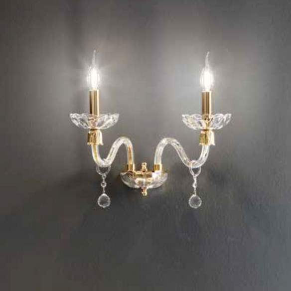 Lampada a parete ROXANNE in vetro soffiato lavorato a mano. Particolari in finitura oro.