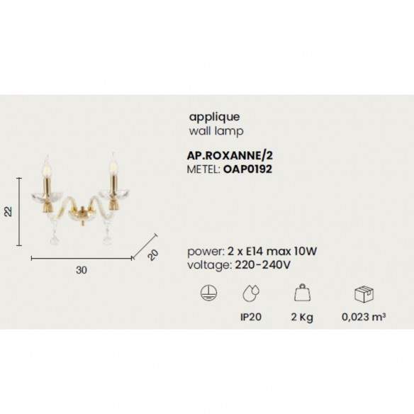 ROXANNE esalta la parete con la bellezza del vetro soffiato lavorato a mano, impreziosito da delicati dettagli in finitura oro. Un’applique decorativa che illumina con discrezione e grande personalità, perfetta per ingressi, corridoi, testate letto o salotti raffinati.