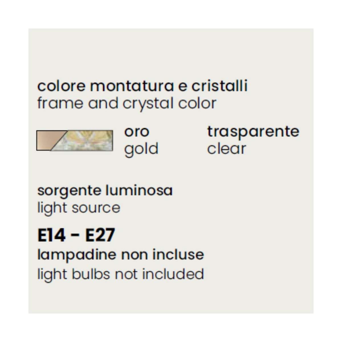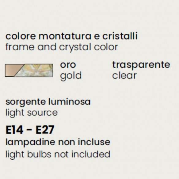 Sorgente luminosa E14 - E27 (lampadine non incluse).