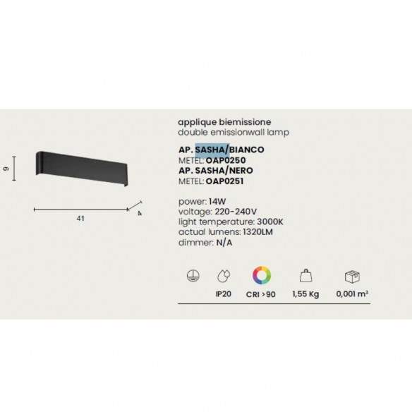Lineare, moderna, sorprendente: Sasha è l’applique a LED che valorizza le pareti con una doppia emissione luminosa, creando un effetto scenografico elegante e mai invasivo. Realizzata in alluminio e disponibile nei colori bianco e nero, si integra perfettamente in qualsiasi ambiente, dalla zona living al corridoio, fino alla camera da letto.