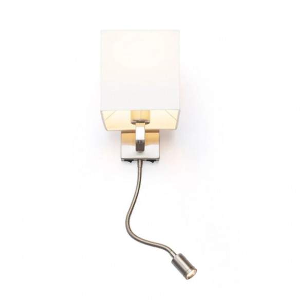Lampada a parete TAINA con paralume in tessuto completata da riflettore LED su collo di cigno.