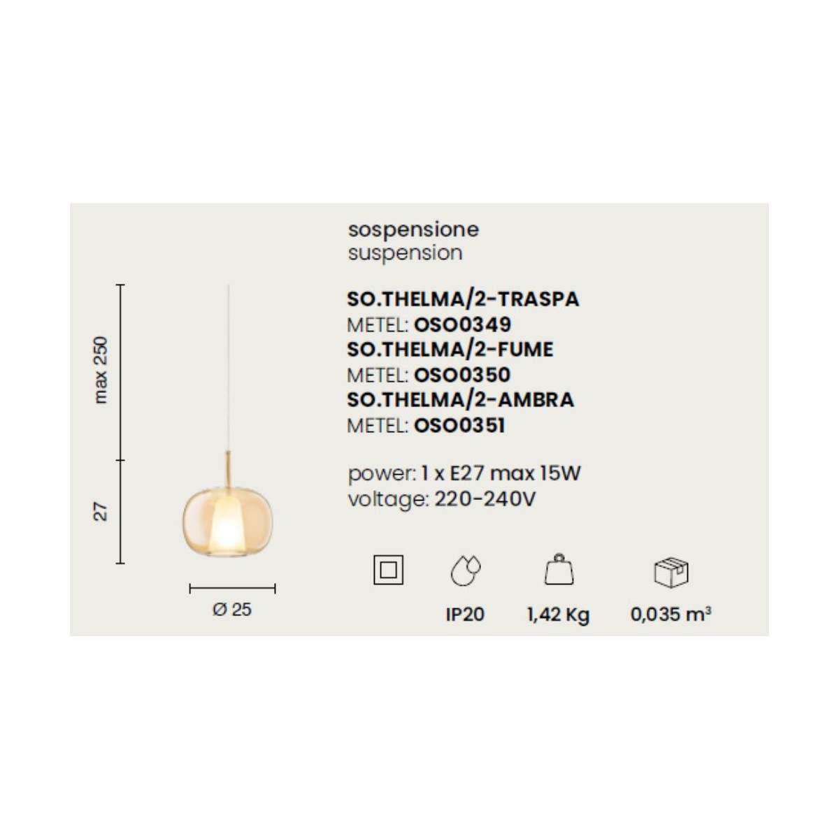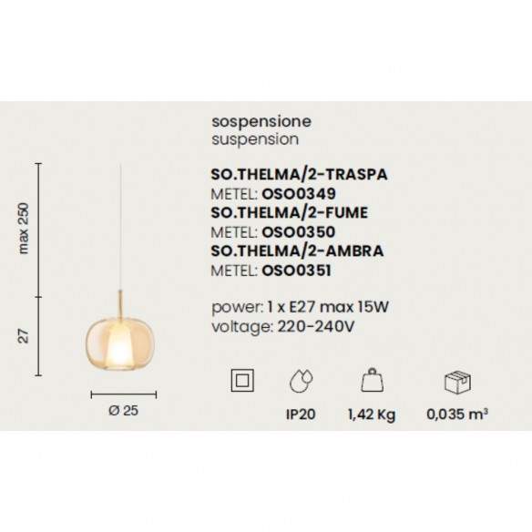 Pensata per lampadine E27, Thelma è ideale sia come punto luce singolo sia in composizioni multiple, perfetta per chi desidera una lampada leggera, dinamica e piena di personalità, capace di trasformare ogni stanza in un piccolo capolavoro di stile.