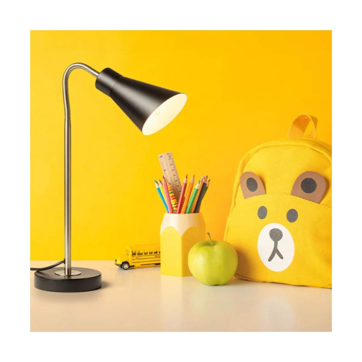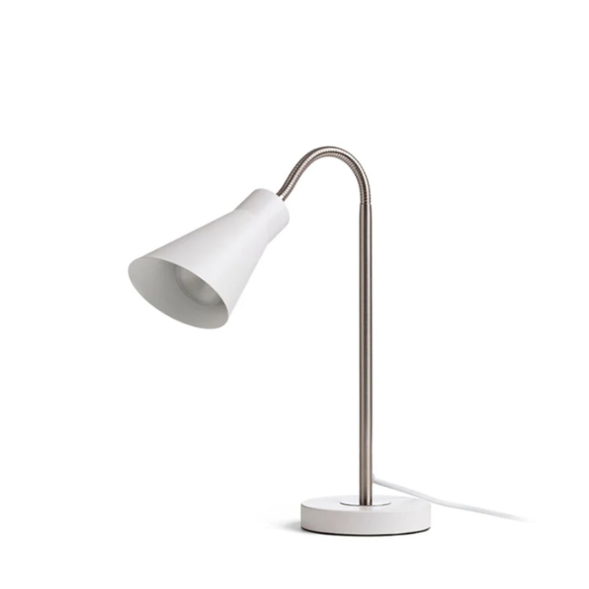 Il collo flessibile consente di orientare il fascio luminoso esattamente dove serve, ideale per lettura, studio o attività creative, mentre la struttura in metallo le conferisce stabilità e un tocco di eleganza contemporanea.