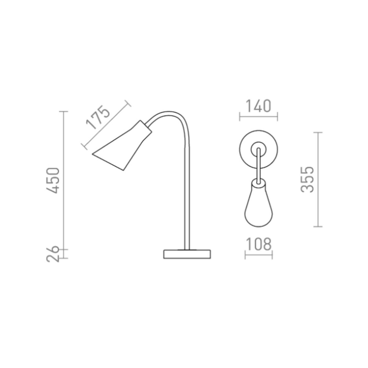 Lampada da tavolo ANIKA in metallo con collo flessibile da utilizzare con lampadina E27.