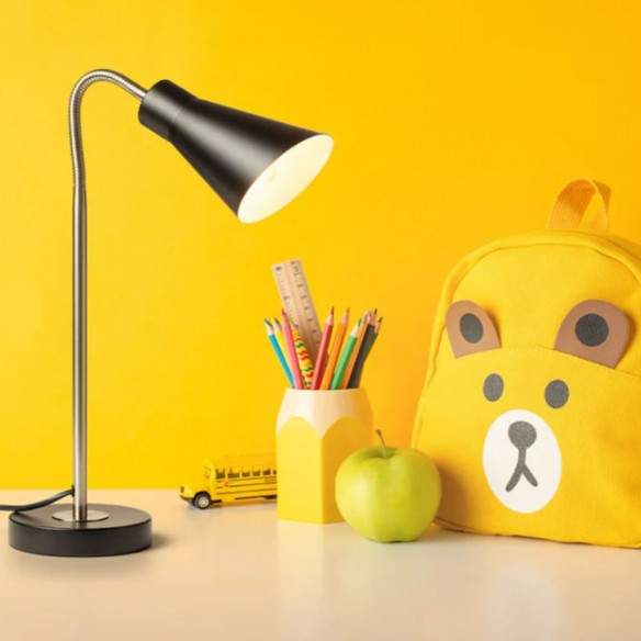Il collo flessibile consente di orientare il fascio luminoso esattamente dove serve, ideale per lettura, studio o attività creative, mentre la struttura in metallo le conferisce stabilità e un tocco di eleganza contemporanea.