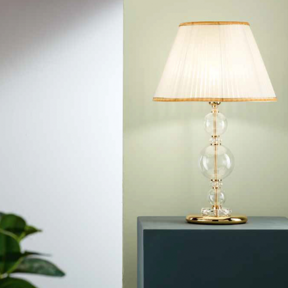 La versione grande, con un’altezza di 27 cm e paralume da 25 cm, è ideale come lampada da comodino o da appoggio su tavolini e mensole.