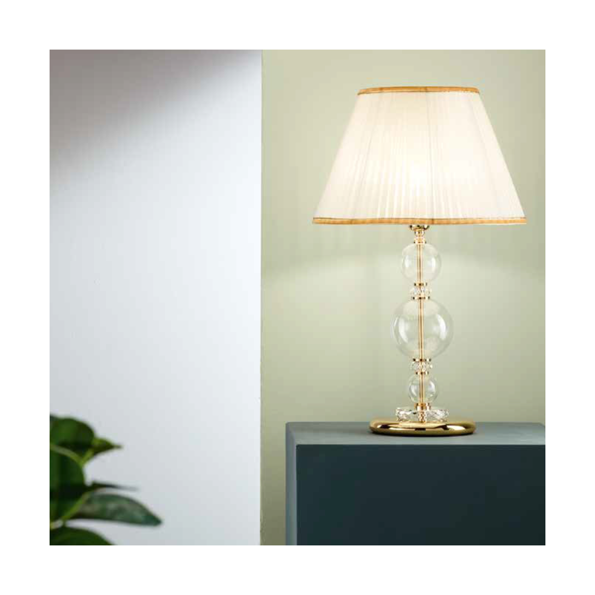 Lumetto BACH in vetro trasparente lavorato a mano. Dettagli in metallo.
