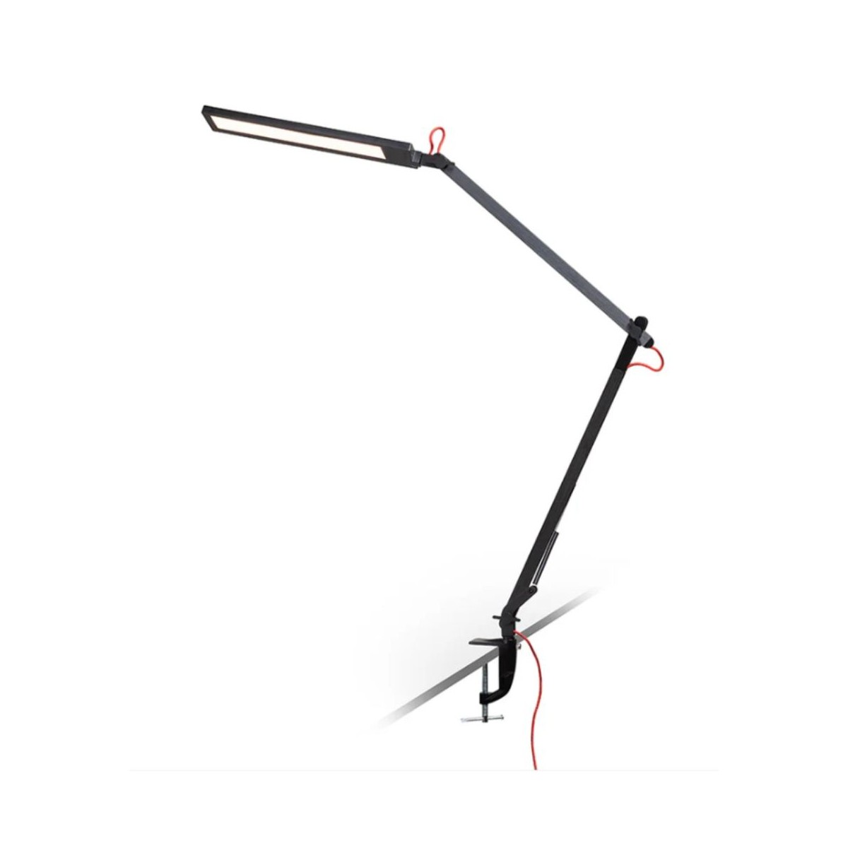 EMA può essere fissata a un tavolo o a uno scaffale grazie a un supporto separato, rendendola estremamente pratica in ambienti di lavoro o studio. Con 1000 lumen e una potenza di 10W, garantisce una luce calda e confortevole (3000K) senza consumi eccessivi.