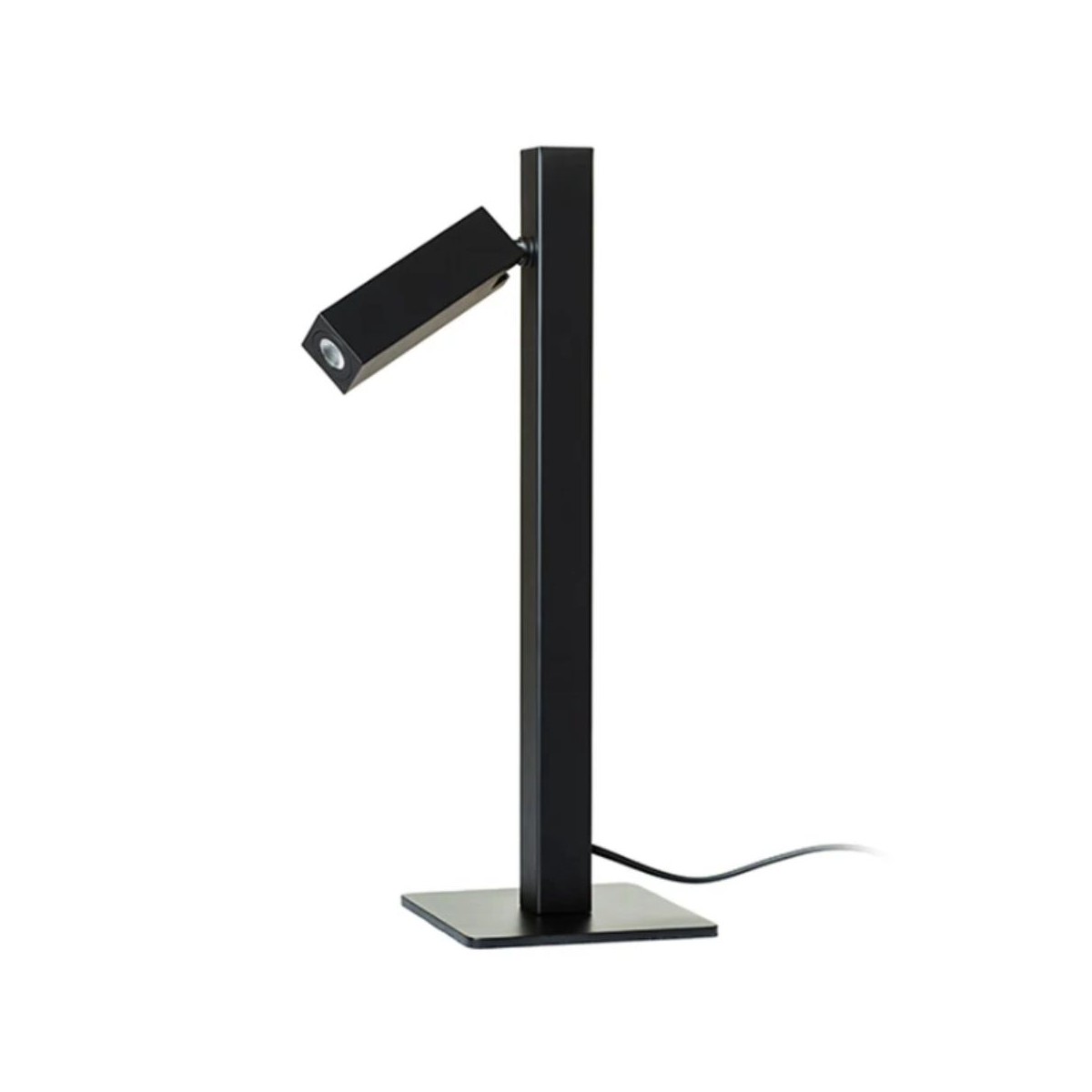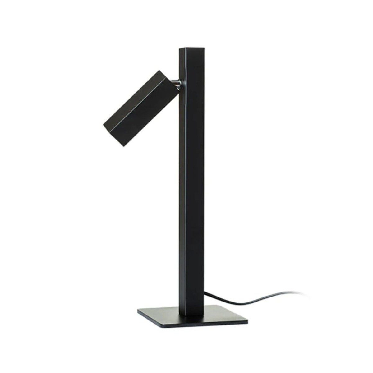 Lampada da tavolo FADO con design quadrato e riflettore LED orientabile.