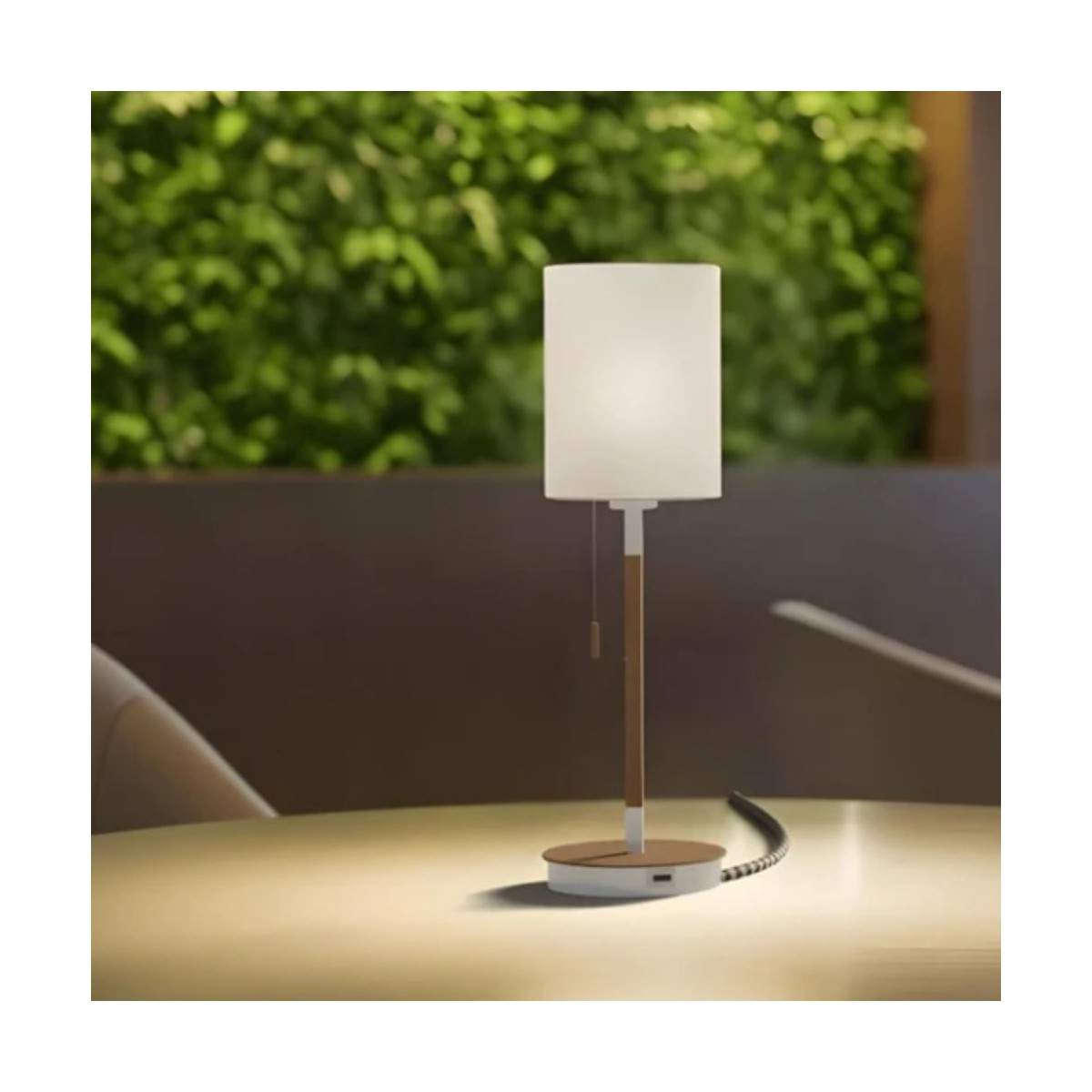 Lampada da tavolo KEITH/ RON con paralume in tessuto e porta USB integrata nella base.