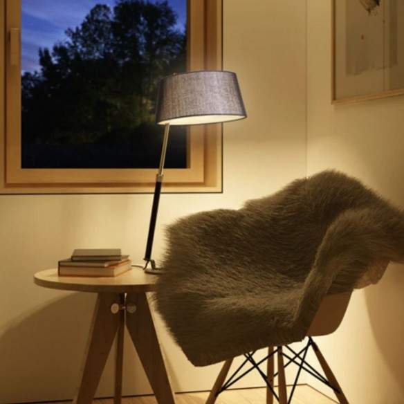 Il paralume in tessuto diffonde un’illuminazione morbida e piacevole, perfetta per creare un’atmosfera accogliente su scrivanie, credenze o tavolini.
